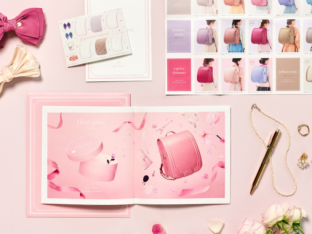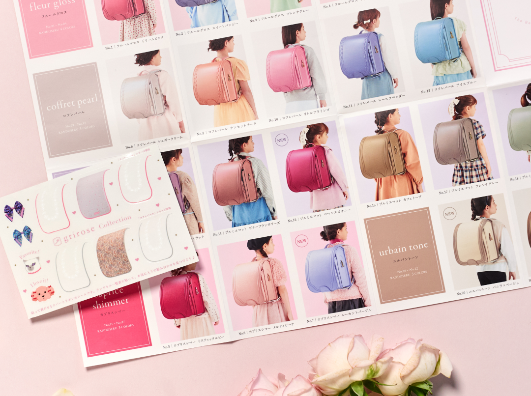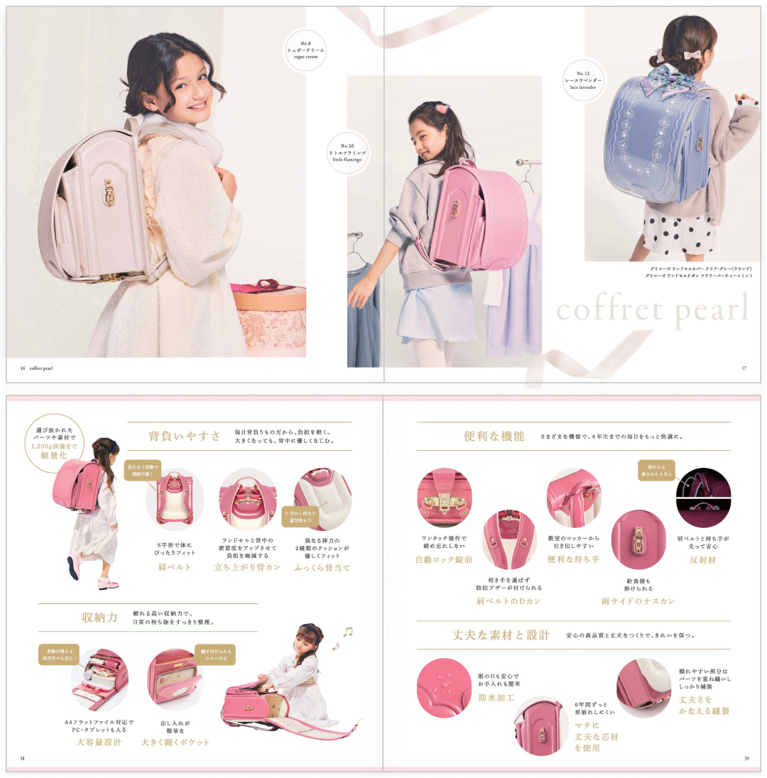 すべてのランドセルを写真でご覧いただけるほか、製品仕様や無料修理保証、店舗情報など、役立つ内容が一冊に。